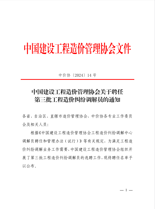 祝贺宝典(中国)副总经理关志一被中国建设工程造价管理协会聘任为第三批工程造价纠纷调解员